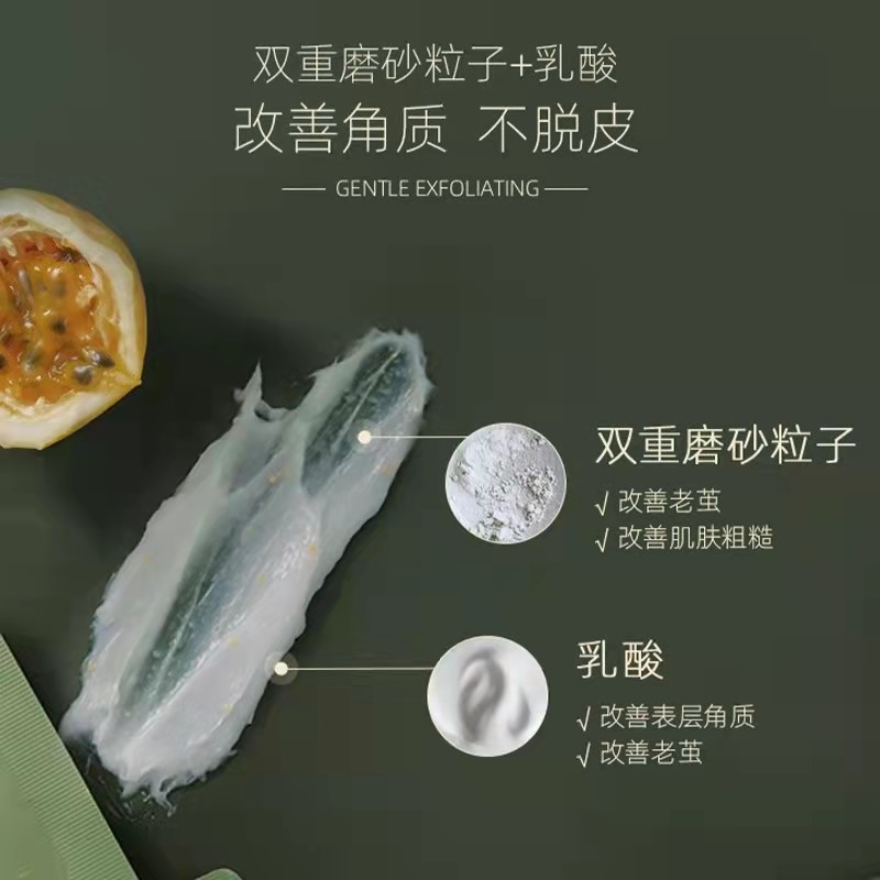 功效:双重磨砂粒子+乳酸,改善角质,不脱皮,不伤肌肤。有效滋润,养护保湿。