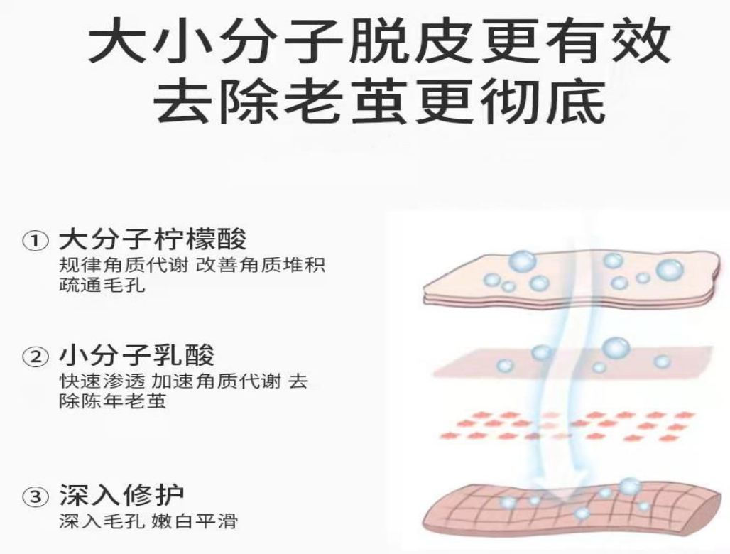 注意事项:1.本品为一次性用品,不可重复使用;2本产品含有乳酸需要与防晒化妆品同时使用;3.使用后如有任何不适,请立即停止使用;4.皮肤受伤,有伤口及红肿不得使用本品;5.使用后请勿用手撕扯脱离角质层,避免伤及皮肤。
